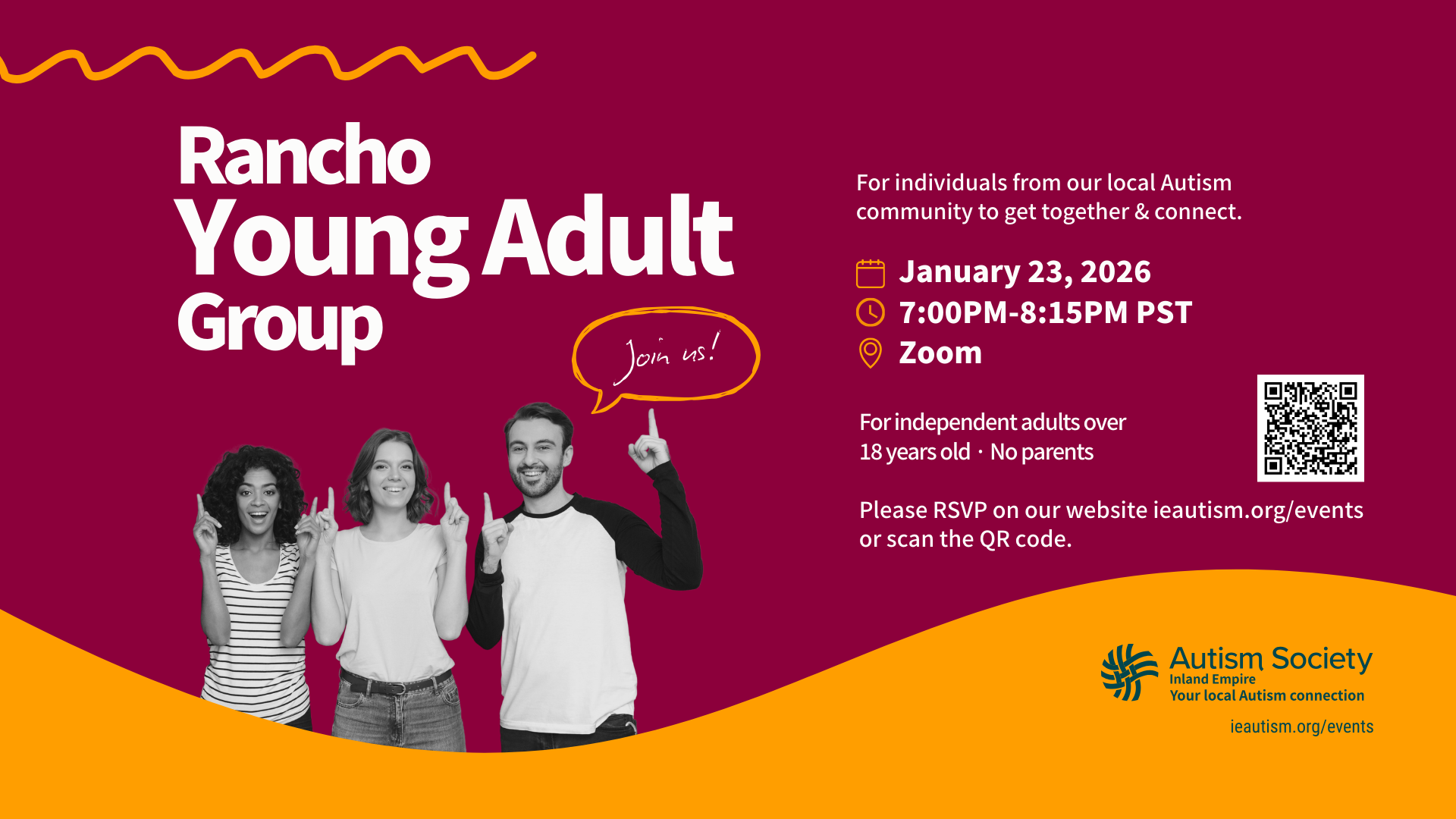 The Rancho Cucamonga Group will be hosting a virtual meet-up. This online event is intended for independent adults over 18 years old. No parents allowed. Please RSVP! |
