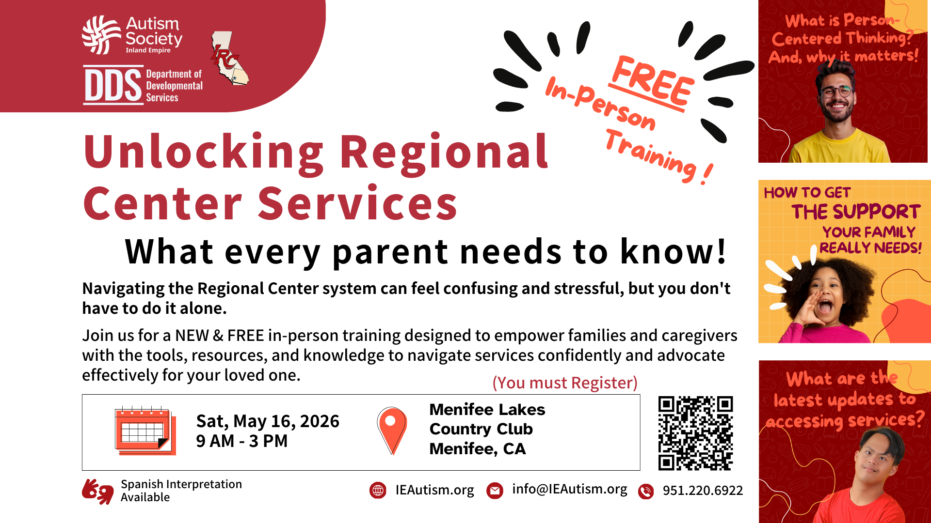 Navigating the Regional Center system can feel confusing and stressful, but you don't have to do it alone. Join us for a NEW & FREE in-person training designed to empower families and caregivers with the tools, resources, and knowledge to navigate services confidently and advocate effectively for your loved one. |